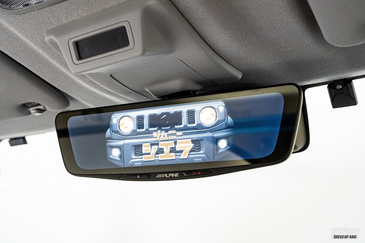 専用開発されたドライブレコーダー搭載10型デジタルミラーは、大画面でありながらスリムなデザインを確立しており、アームごと交換する方式で強固でスッキリした装着を実現。後方視野を大幅に拡大すると同時に夜間の視認性も向上させている。ジムニー/ジムニーシエラ専用モデルなので、BIG X同様にオープニング画面も用意されている。