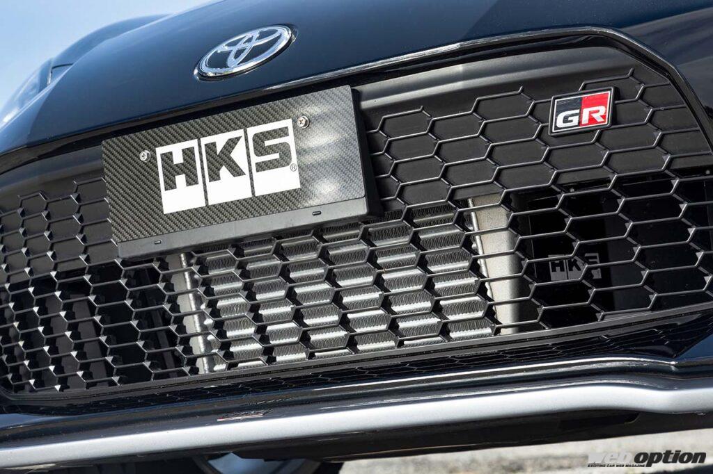 サーキット走行を走るならば、NAでもオイルクーラーの装着がマストと言われるほど油温のヒート傾向が強いGR86/BRZ。熱量が高まる過給機付きなら装備は必須と心得たい。HKSのオイルクーラーキット(23万9800円)は、ウォッシャータンクを移設して助手席側バンパー内にコアを設置。導風ダクトにより効率よく冷却できるような仕組みとなっている。新採用のメッシュホース&フィッティグを採用。専用のアルミ製ウォッシャータンクも同梱する。