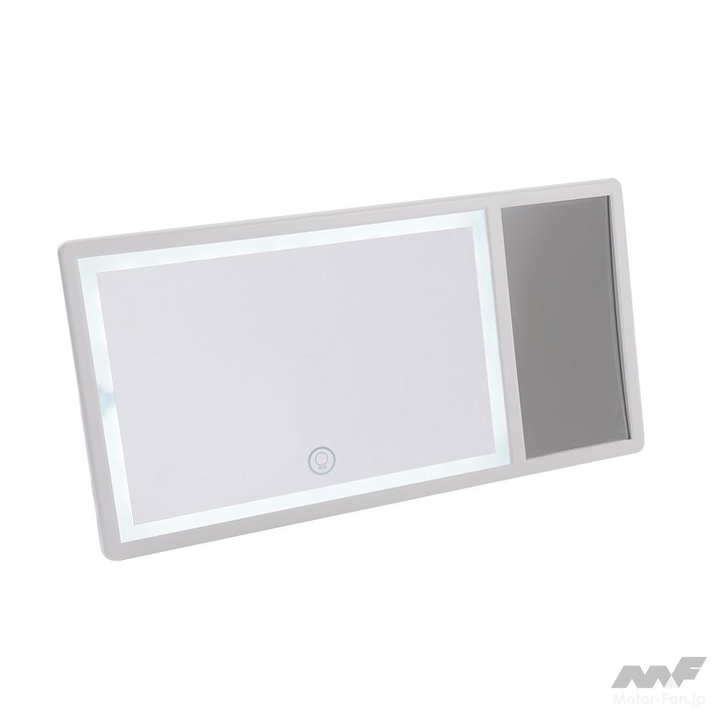 クルマに備え付けのバニティミラーが小さくて見にくい、照明が無くて夜間は使いにくいという人にピッタリ! 身だしなみチェックや化粧直し以外にも、後席に乗せている子どもやペットの様子を確認するのにも活用ができる。