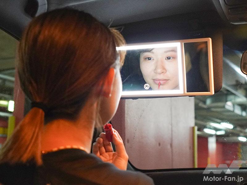 クルマに備え付けのバニティミラーが小さくて見にくい、照明が無くて夜間は使いにくいという人にピッタリ! 身だしなみチェックや化粧直し以外にも、後席に乗せている子どもやペットの様子を確認するのにも活用ができる。