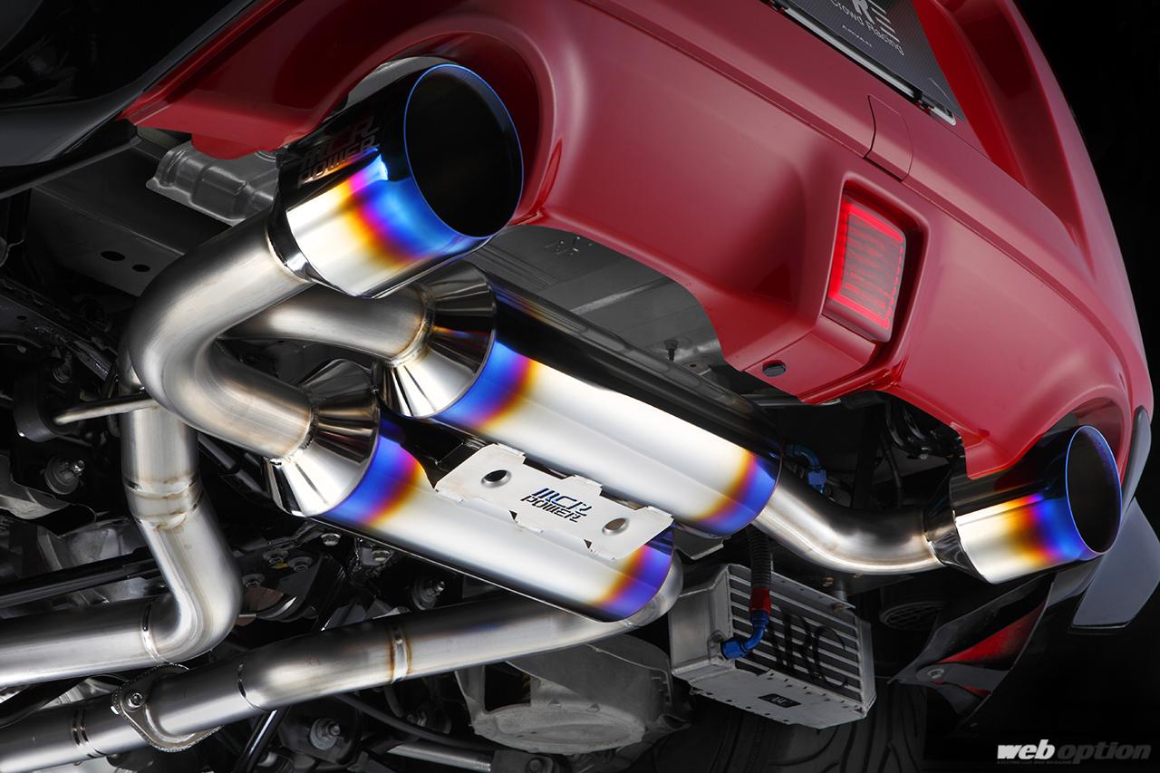 そして、その上流部に“究極の音色”を産み出すべく、集合部までの距離を長くしたEXマニと専用設計のスポーツキャタライザー、そしてフルチタン製センターパイプ(60.5φ×2→76.3φ)をセット。