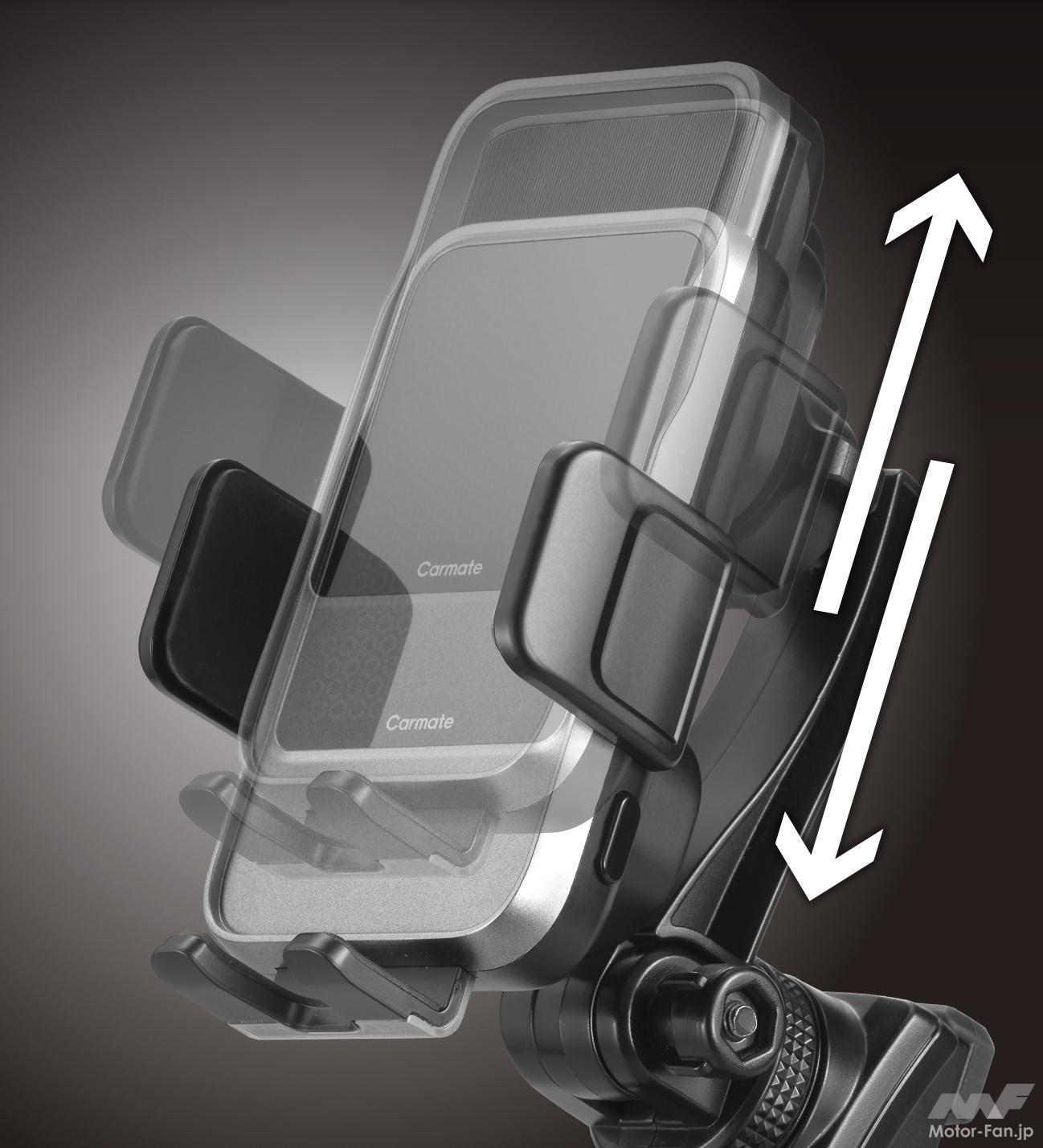 また、キャパシタを内蔵し、エンジンOFF後の電源が切れている状態でもホルダーのアームを開いてiPhoneを取り外すことができる。