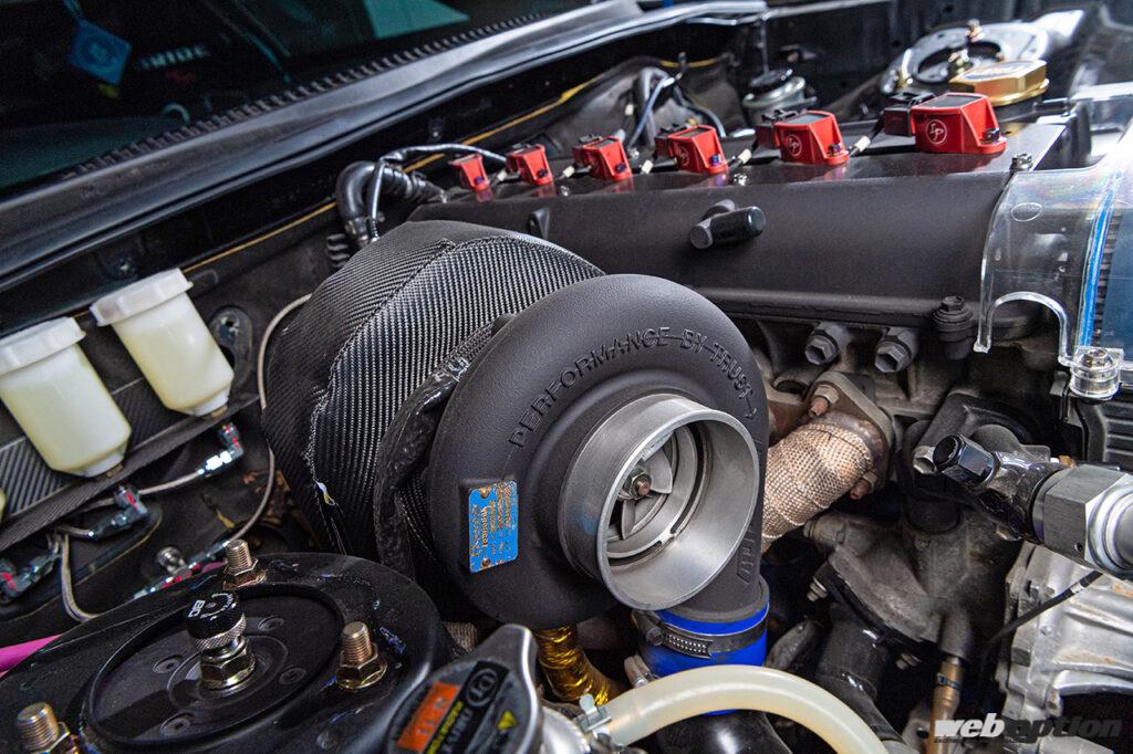 心臓部に収まるエンジンは、ハイコンプ化された3.1L仕様の2JZ-GTE。そこにT88-38GKタービンを組み合わせることで800馬力を超える出力を獲得。また、スロットルは電子制御化されており、シフトカットやオートブリッピングなどの機能も実装済みだ。これらのメカニカルパートは名将“ドゥーラック”がメイキングを担当している。