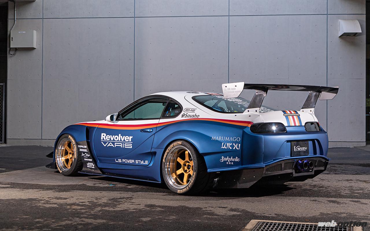 パリダカ仕様のポルシェ959を彷彿とさせるロスマンズカラーで身を包んだ美しいJZA80スープラ。東京オートサロン2020の“バリス”ブースで公開されるやいなや、SNSを通じて国内はもとより海外にまで情報が拡散され、大きな反響を呼び起こしたスーパーチューンドだ。