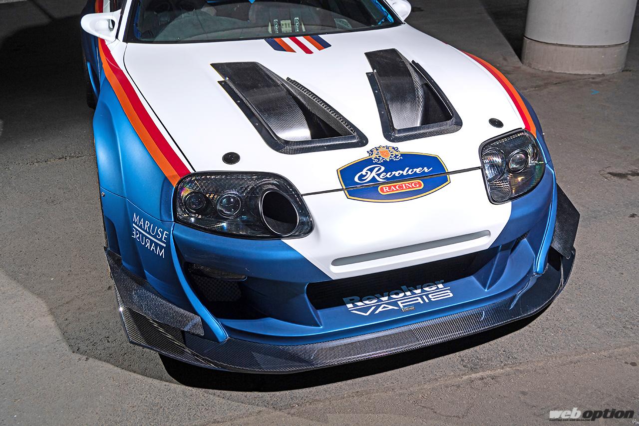 そしてエクステリアは、バリスによって開発されたSUPRIMEワイドボディキットでフル武装。機能性をビジュアルとして昇華させたデザインワークは流石の一言だが、これによりJZA80のスタイリングをさらに研ぎ澄ませ、ハイチューンドに相応しいアピアランスを生み出すことに成功している。
