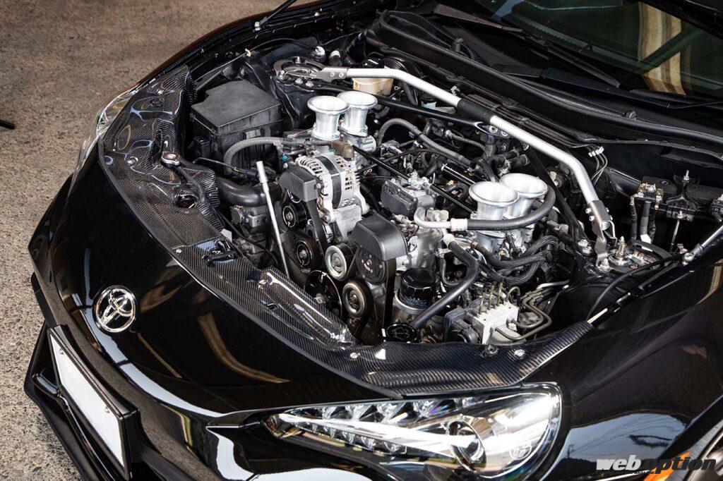 FA20は直噴とポート噴射を組み合わせたD-4Sを採用するが、4スロ化するに当たって直噴側のインジェクターは無効化。その分、ポート噴射側のインジェクターを増量してある。エンジンルームに向かって左側のデリバリー横に備わる黒い筐体が直噴用ECUだが、それも働いていない状態となる。エアフロと吸気温センサーを共用しているが、カプラーを繋ぎかえることでエアフロを読まずに、吸気温センサーとしてだけ使うように変更。