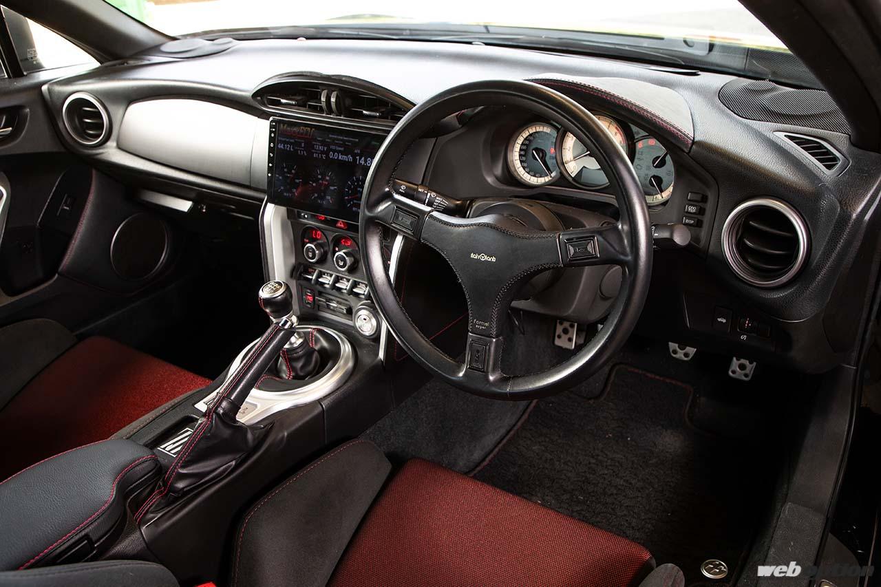 クラシックなイタルボランテのステアリングホイールを備えるほか、2015年に発表された86の特別仕様車『86 style Cb』の純正メーターを装着。レトロな文字盤と電球色に光る感じが旧車感を醸し出す。