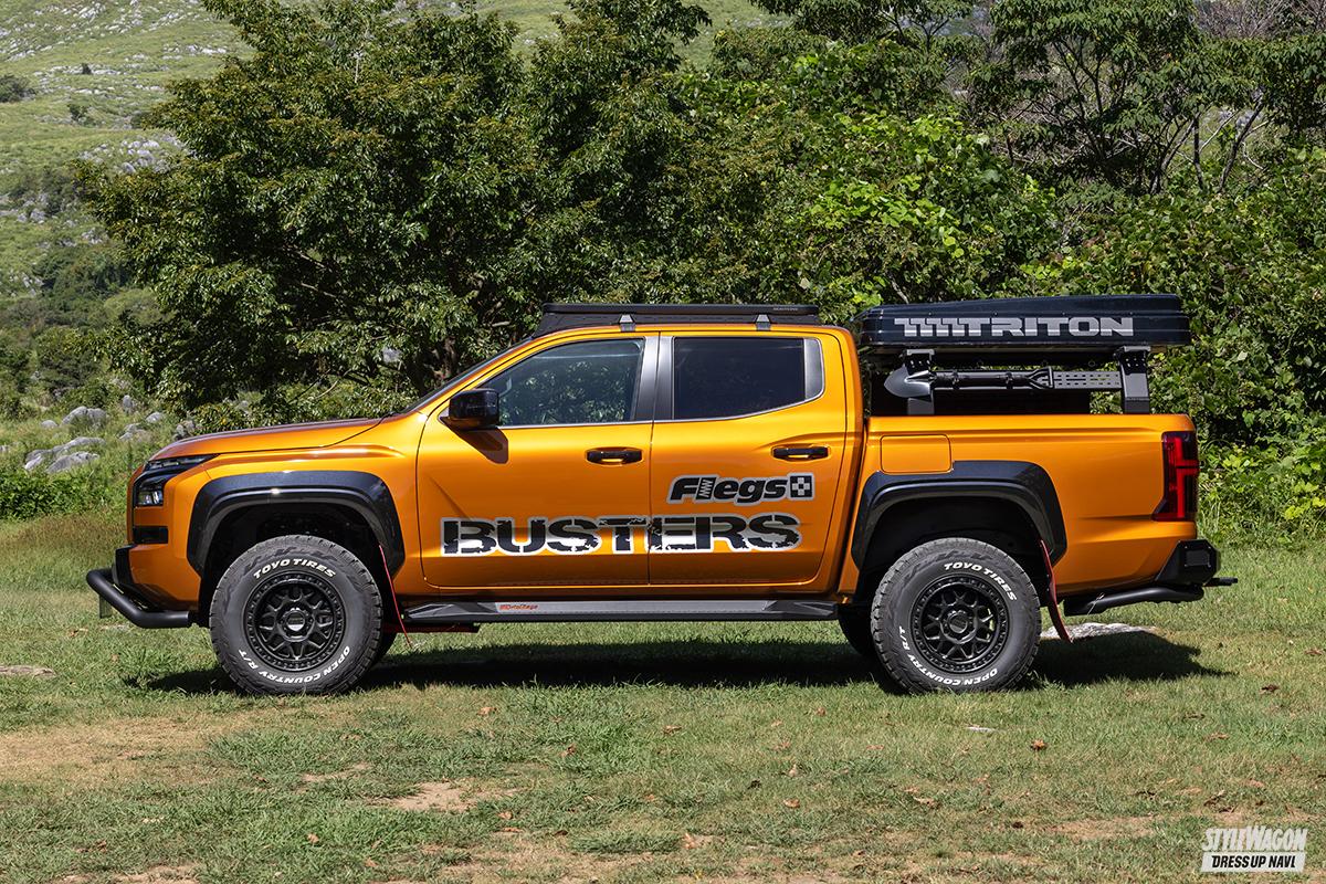 デリカD:5用でもおなじみのフロントバンパーガードGOQUBUTOをはじめ、リアカーゴスペースの機能性を高めるベッドラック、ルーフキャリアなど、続々と新型トライトン用アイテムの開発を進めるオートフラッグスから、また一つ注目のニュースが飛び込んで来た。今回のトピックは2種類用意された足回り。まずストリートユーザー向けに企画されたのがモノチューブダンパー。構造は剛性面や減衰力の安定性に優れた倒立式で、車高調整機能も採用。スプリングは純正をそのまま使用可能とするなど、ノーマルの物足りなさを補うオールラウンドな特性を目指している。そしてもう一つが、前後にリザーバータンクを備えた上位モデル。こちらはダート/クロカンといったヘビーデューティユースも視野に入れたハイスペック仕様。おのずとターゲット層も絞られて来るが、ニッチな分野に対しても意欲的に製品の提案に取り組む同社の姿勢は、三菱車ファンからの共感を集めそうだ。
