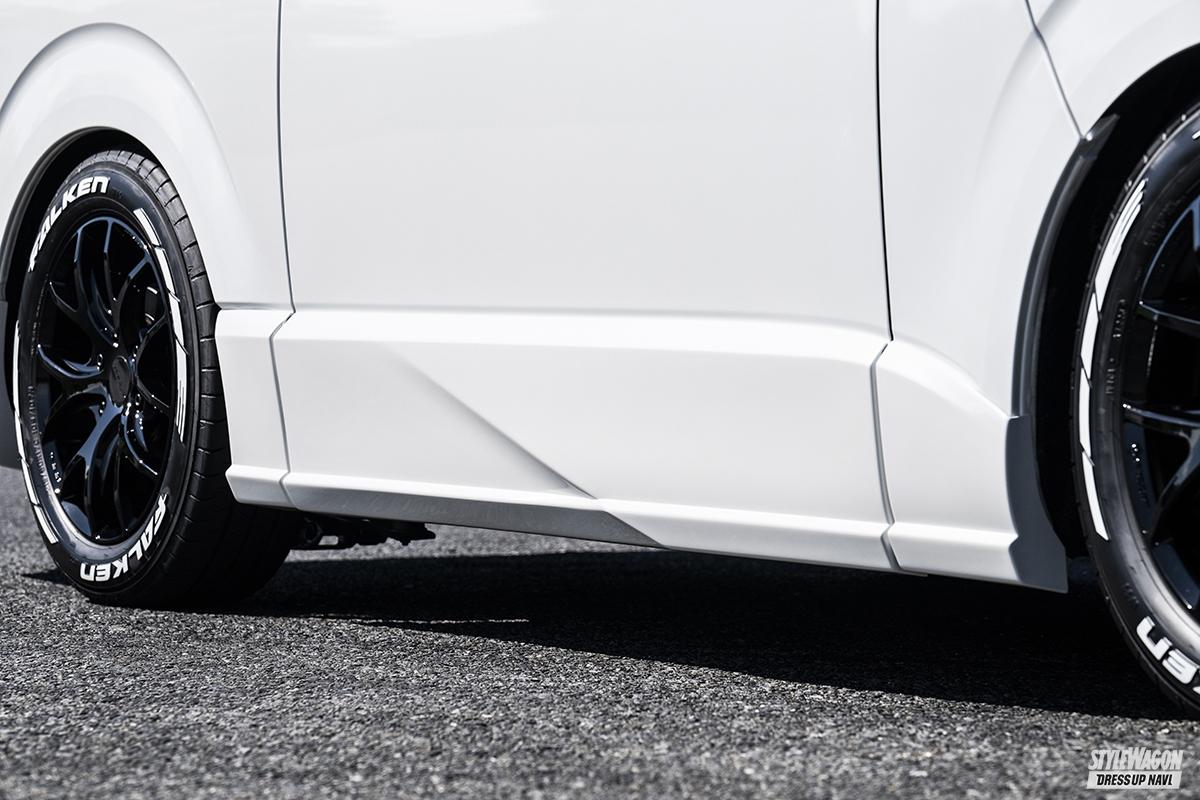 ・オフ+ラグジュアリーをテーマにした新基軸のエアロキット ・オーバーフェンダーの出幅は25㎜! ・8人乗り3ナンバー仕様のコンプリートカーとして販売中