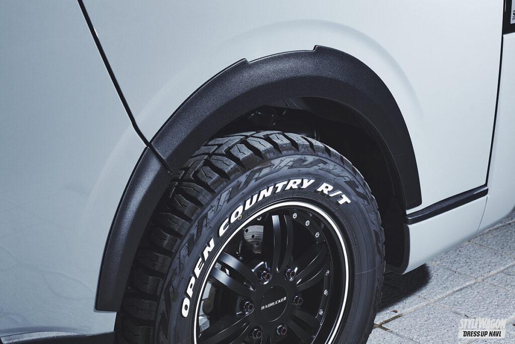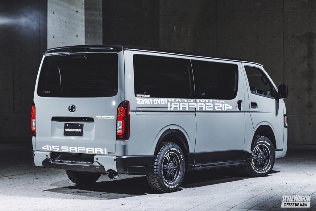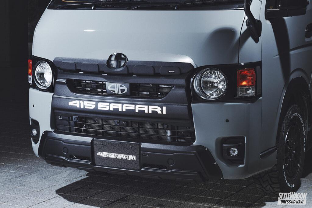 ラブラークがリリースする415コブラは、エアロやバッドフェイスボンネットなどローダウンの似合うデザインで人気のブランド。新たにリリースされた「415サファリ」は、415コブラとはテイストもターゲットも異なる、オフテイストのクロスオーバースタイルが特徴だ。