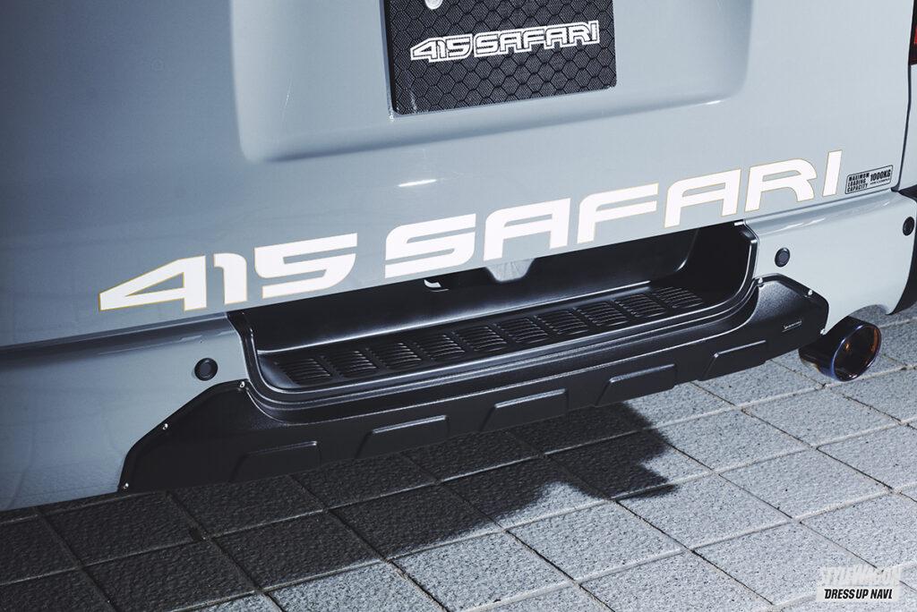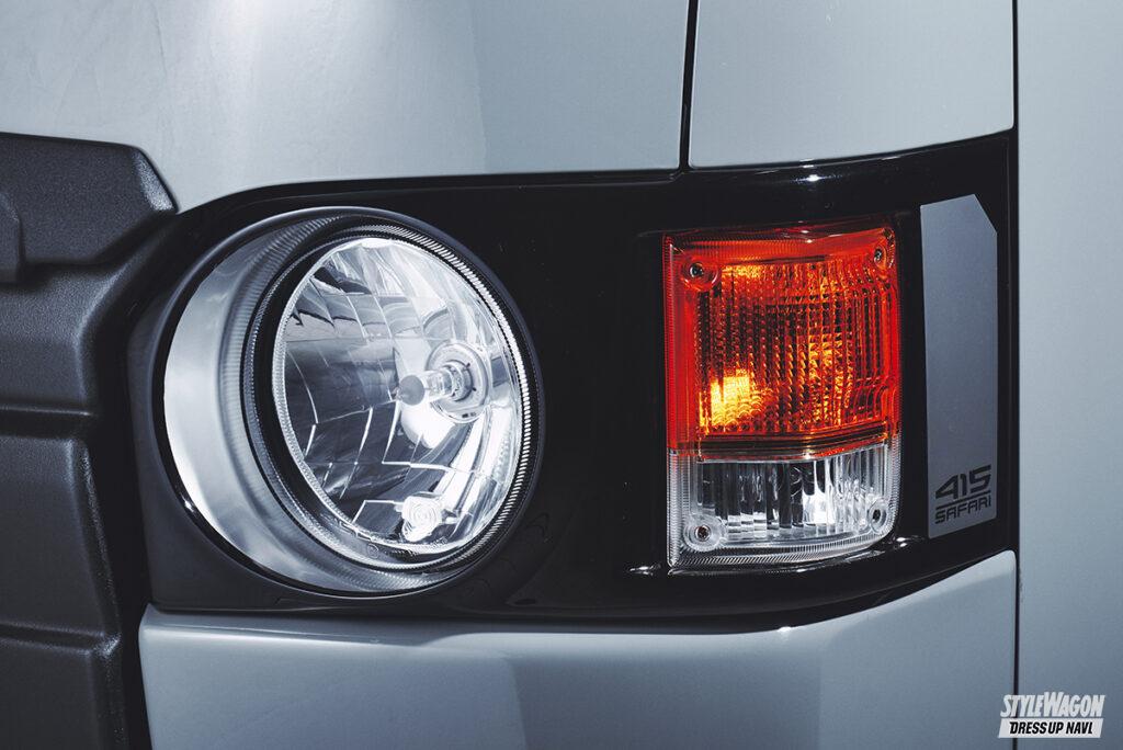 これまでの415コブラでは見られなかったリフトアップやノーマル車高にも似合うプロテクションボディキットは、フロント・サイド・リアなど全10ピース構成。ノーマルボディに被せて装着するだけで、クロスオーバースタイルに変身する優れものだ。ほかに丸目フェイスキットやテールランプ、ホイールなども用意されていて、ボディ全体を415サファリでコーディネイト可能となっている。