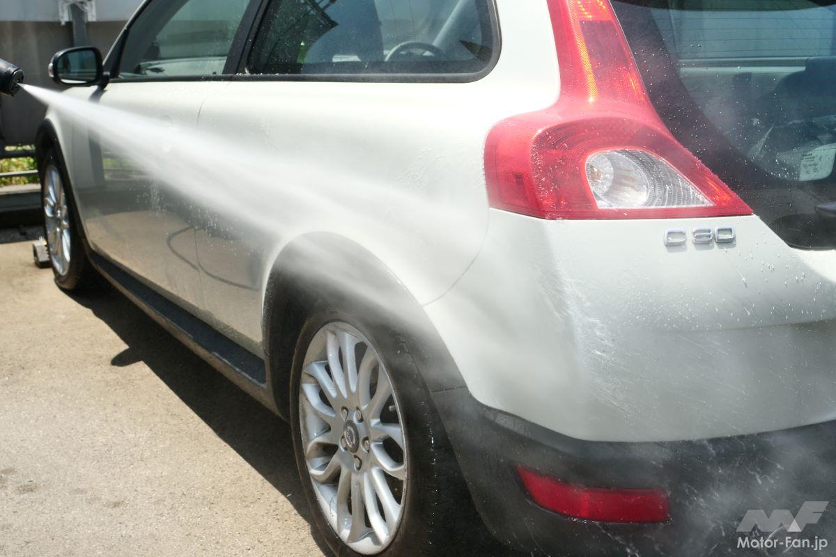 また、水切れ性能も良くなっていて、シミになりにくい点も性能が向上した部分。頑固な水アカはもちろん、塗装面に残っている古いコーティング層もバッチリと除去できるので、新たにコーティングする前の下地処理にピッタリのアイテムでもあるのだ。白いボディのクルマは、ボディ全体に使用することでホワイトニングすることもできる。作業後に、見違えるくらい真っ白になったボディにきっと感動することだろう。