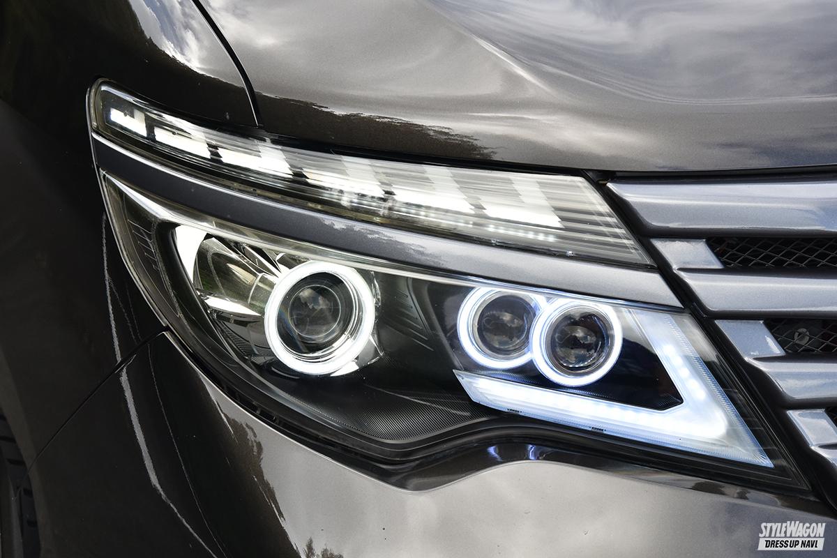 光モノは加工品を入手して自分で手直しした、オリジナルのヘッドライトがポイント。ツインプロジェクターやシーケンシャルウインカーがナイトシーンを艶やかに彩る。テールランプはヴァレンティのスモークタイプでリアまわりを引き締める。