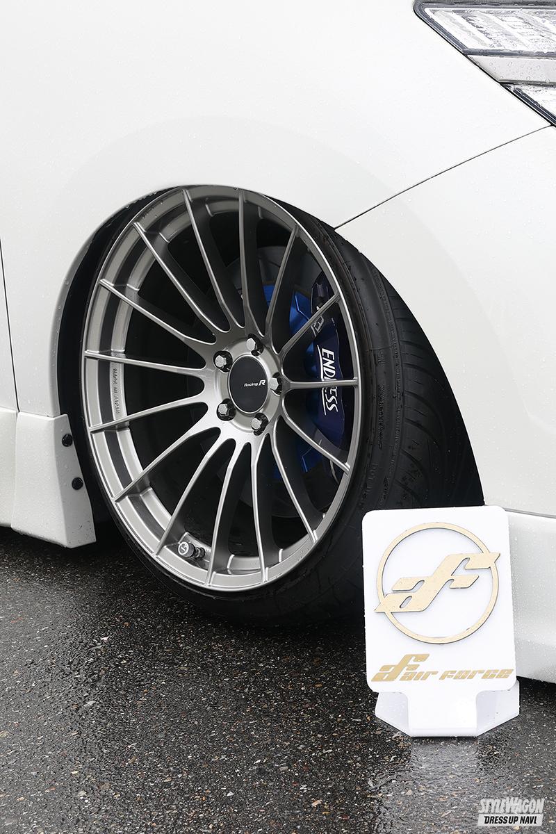 WHEEL●エンケイ RS05RR(F20×10J +25・R20×10.5J+19) TIRE●ナンカン NS2(235/35) EXTERIOR●F/ウイング=純正オプション、R=ワンオフ、グリル=塗装 TUNING●エアサス=エアフォース、マフラー=ワンオフ、フルアーム=Tディメンド、ブレーキ=エンドレス特注 他
