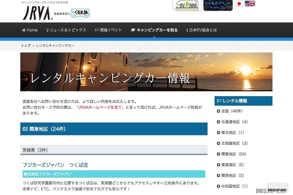 RV協会WEBサイトには全国レンタカー情報を掲載