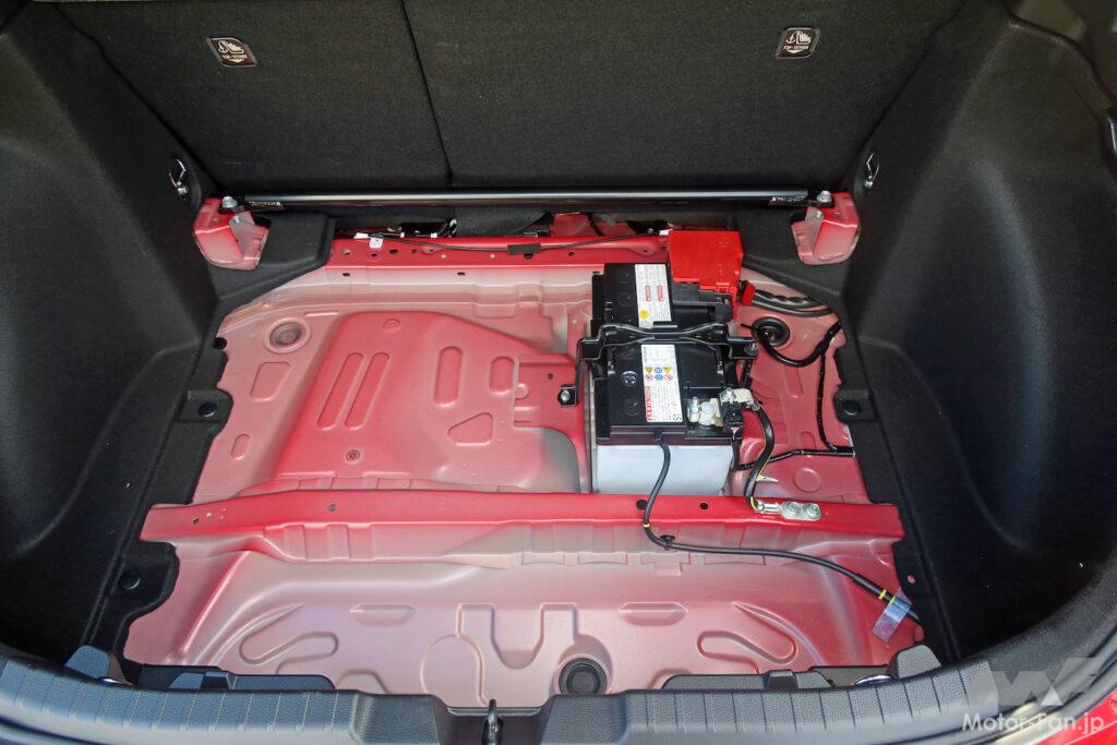 もうひとつはバッテリーアース性能の改善だ。GRカローラはGRヤリスと同様、12Vバッテリーをトランクルームに搭載している。アース端子を留める車体の塗膜を剥ぎ取り、金属面をしっかり出してメタルタッチするようにした。これもモータースポーツ由来の技術で、電子部品の電気特性が改善され、運転操作に対するダイレクト感が向上する。