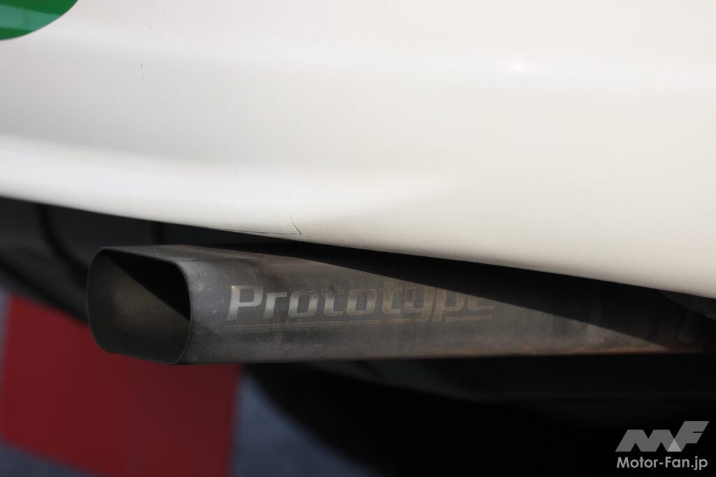 マフラーはプロトタイプオリジナルのワンオフ品を装着。楕円形状とプロトタイプロゴが特徴だ。