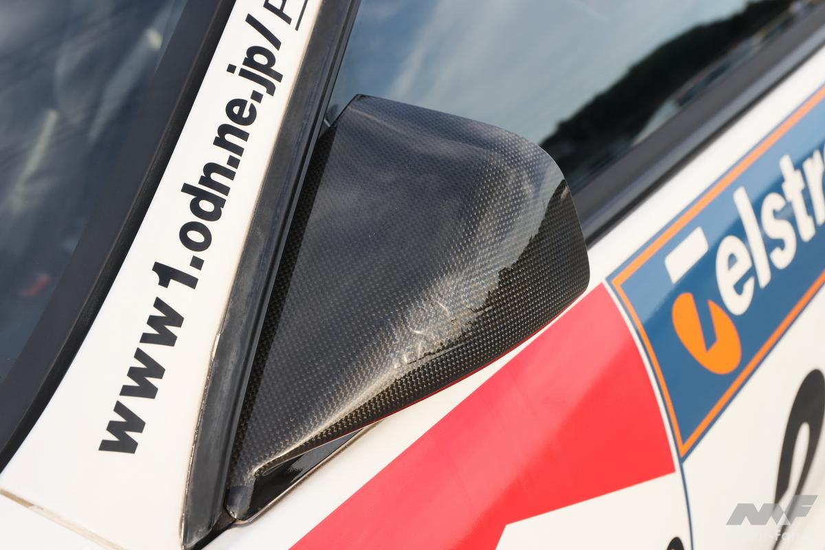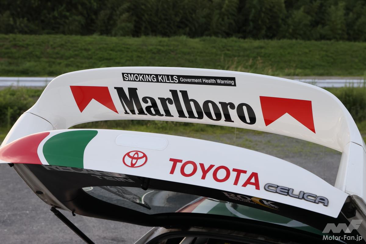 他にもTTE(TOYOTA TEAM EUROPA)のロゴ入りカーボン調のエアロミラーを装着していたり、リヤスポイラーの裏側にもMarlboroのステッカーを貼ってあったりと芸が細かい。