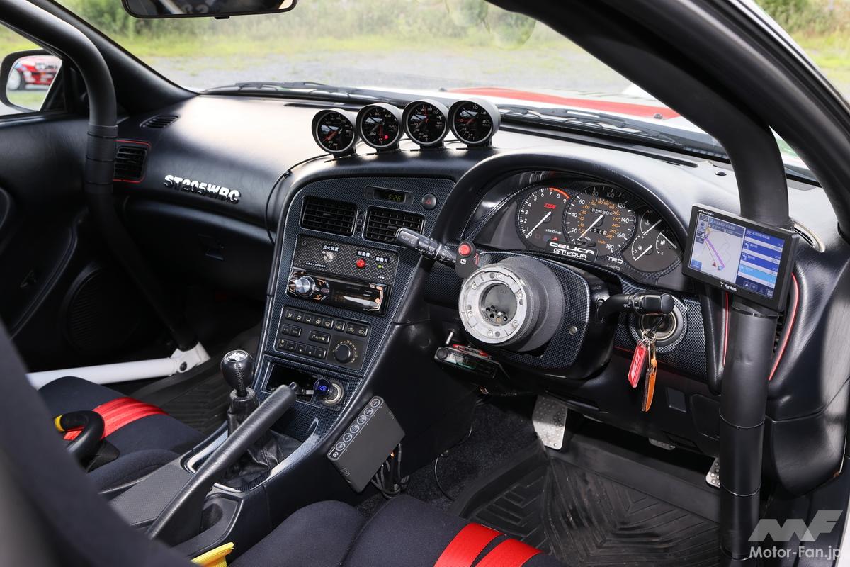 恩田岳史さんが所有するセリカもそんなGT-FOUR(ST205)のWRCレプリカの1台。ベースはWRCホモロゲーションモデルの限定車「セリカGT-FOUR WRC」で、ハイマウント化された大型リヤスポイラーが外観上の最大の違いとなっている。