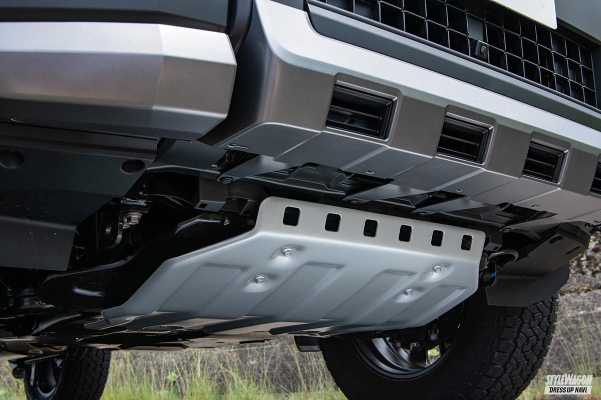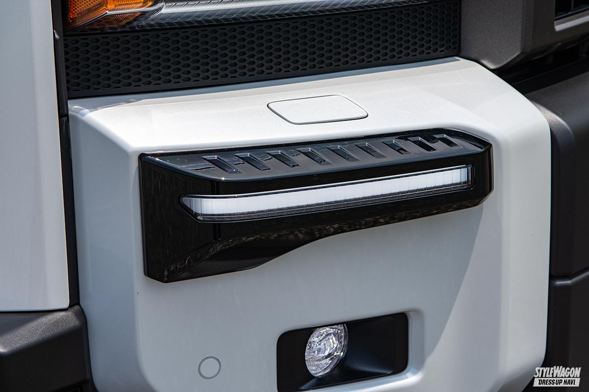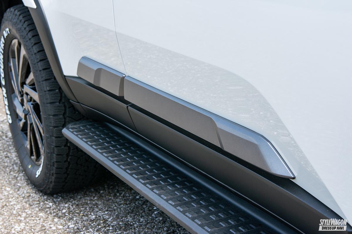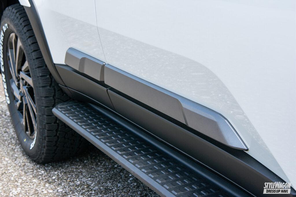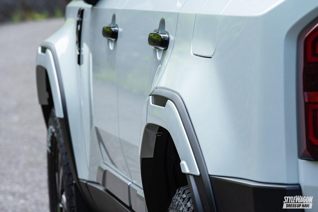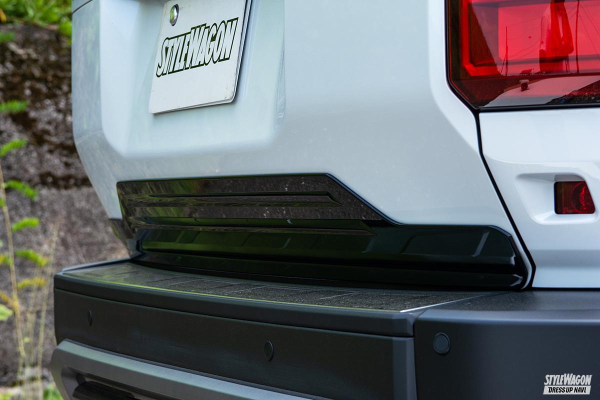 直線的でマッシブな造形となるフロントバンパーガード、スキッドプレート状にスクエアな穴が開けられたフロントアンダーカバーの2点は、250らしいパワー感とワイルドさを引き上げるのに最適。リアもシンプルだが金属調塗装を採用するなど、カタマリ感とメカ感は上々だ。