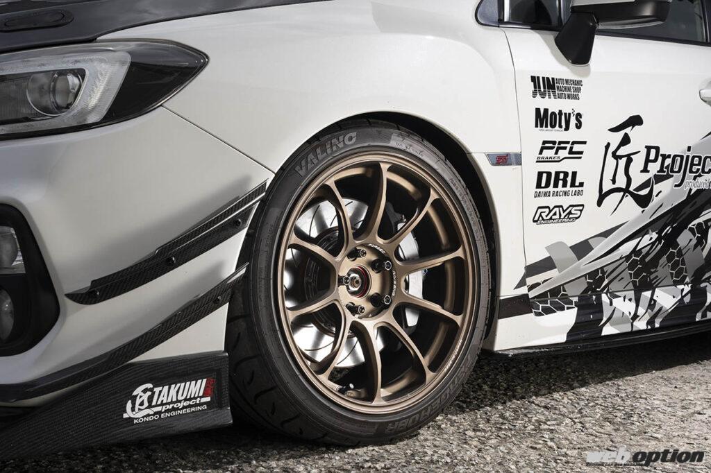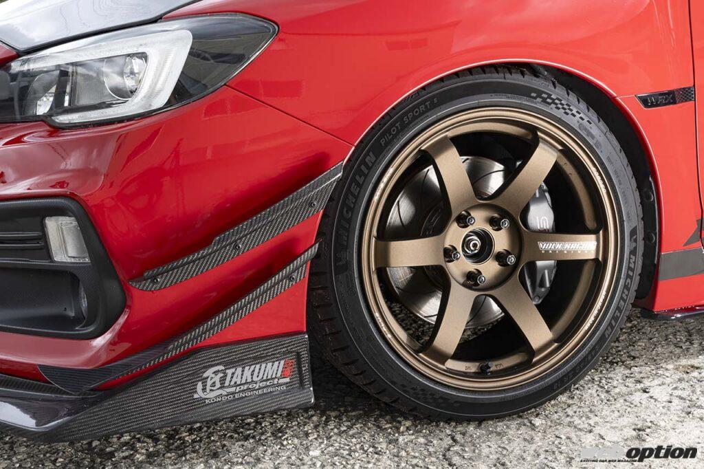 VAB/VAGの足元に深いコンケイブを与える、ボルクレーシング特注ホオイールも2モデルを設定。TE37 SAGA Sプラスが9.5Jプラス35×18インチ、ZE40が9.5Jプラス34×18インチ。装着にはキャンバー調整などのセットアップが前提となるが、足元から走りのオーラを支えてくれる。