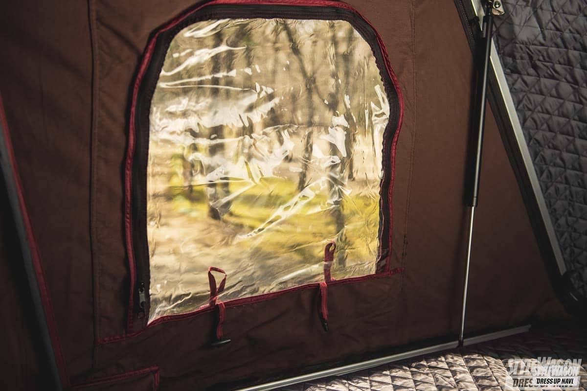 ウインドウはシースルービニールとメッシュに加え、外側のポリエステル素材の3枚構成となっている。