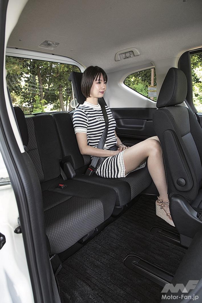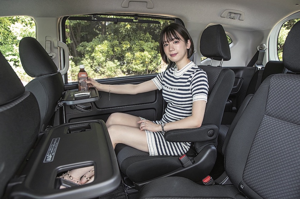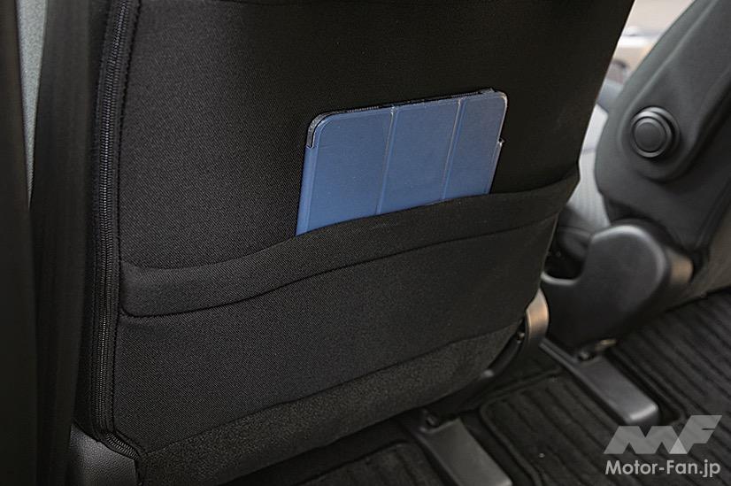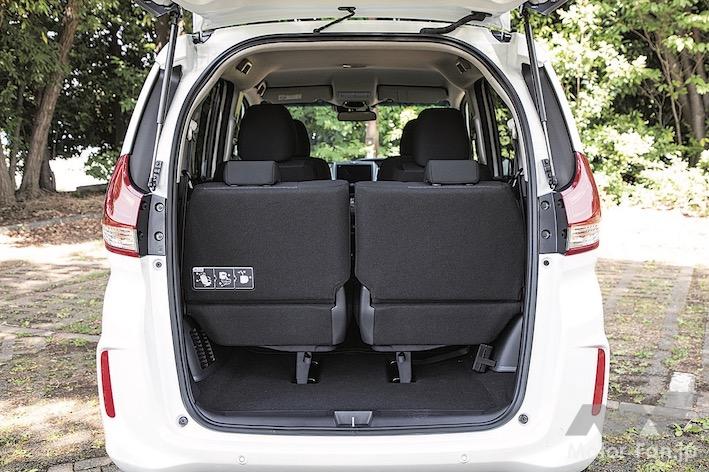 ベンチシート仕様は背もたれを倒してから座面ごと前に転がす〝タンブル格納〞方式で、フラットな床面と高い天地寸法を確保。5人乗り仕様は、クッションを前側に跳ね上げて、空いたスペースに背もたれを倒しこむ。ラゲッジ床面とは大きめの段差ができるが、前後長は最大190㎝ぐらい確保できる。耐荷重200㎏のラゲッジボードを使えば段差は埋められるし、ボード下のスペースに荷物が置けるから、車中泊適性は非常に高い。