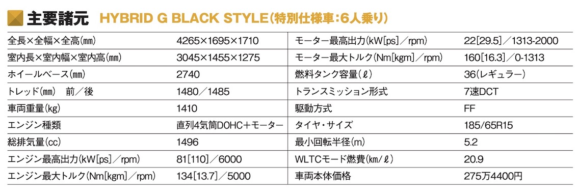 一般にガソリン車とHVがある場合、動力性能はHVが上回ることが多いが、フリードはガソリン車もなかなかよく走る。車重が60㎏軽いのに加え、最大トルクも400rpm低い回転数で21Nm多く出ており、同じパワーを得るには少し低い回転数で済むから、余裕があるように感じる。しかもHVは、22kWのモーター出力が上乗せされるとはいえ、長い上り坂などで電池を使い切ってしまうと、81kWのエンジンだけが頼りになるため「頑張ってる感」が出てしまう。