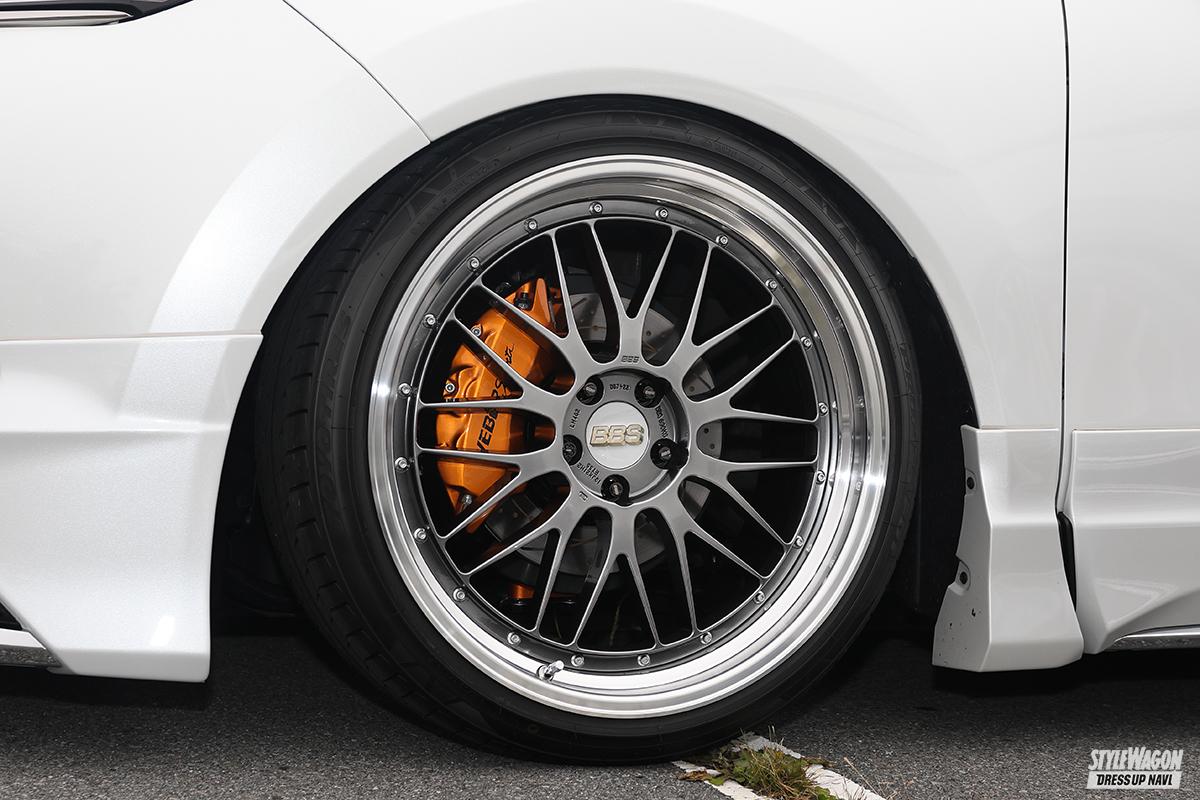 「ハブボルトをロング仕様に打ち換えた」そう。そうすることでホイールとの相性も含めスペーサーを有効活用(ワイトレではない)し、このスタイルが完成した。