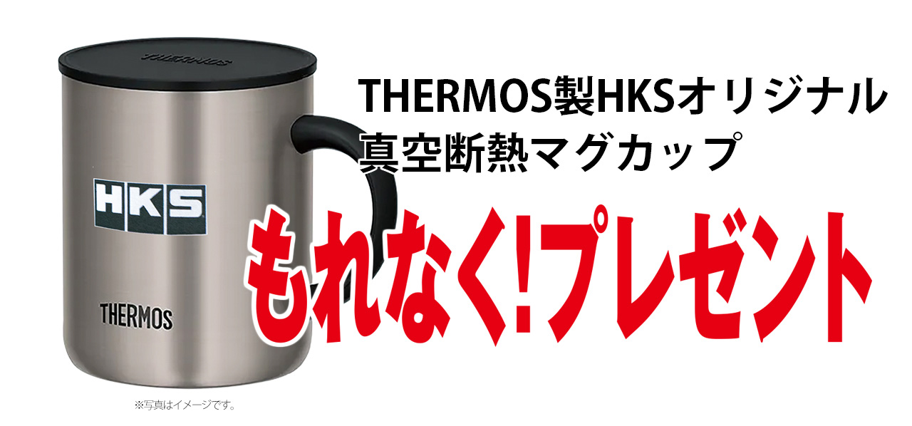 車高調キットもしくはマフラーを購入すると、サーモス製のHKSマグカップがプレゼントされる。