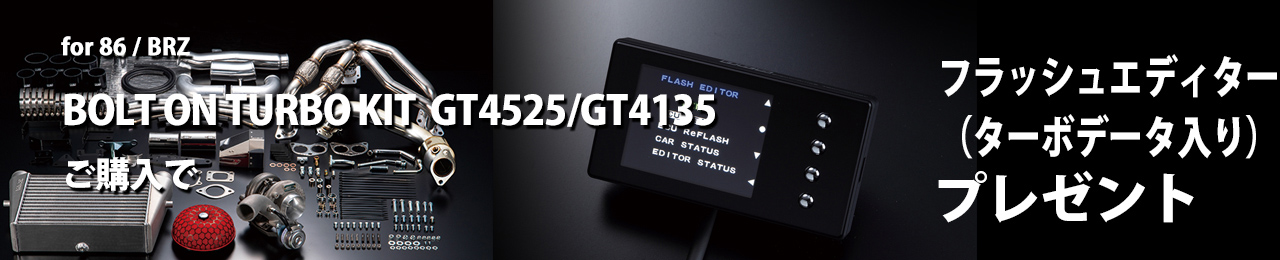 86&BRZ用ボルトオンターボキット(70万4000円)と購入すると、フラッシュエディター(7万7000円)がプレゼントされる。