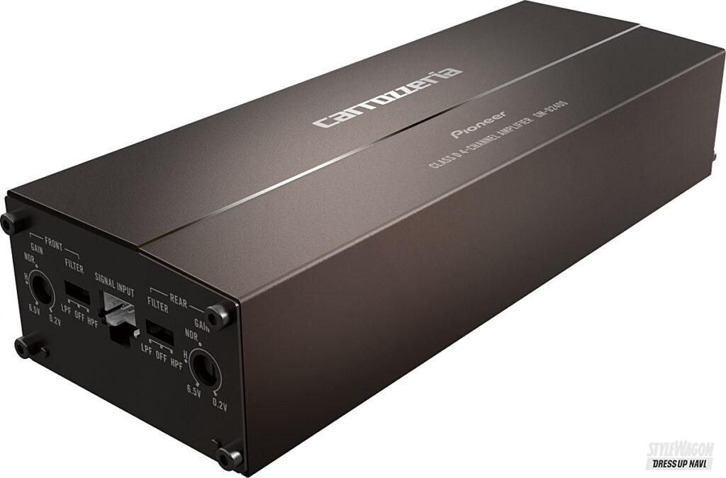 181mm×38mm×64mmとほぼ手の平サイズの筐体ながら、100W×4chのclassDハイパワーアンプを搭載。高性能なオペアンプと直列抵抗成分(ESR)が小さい電解コンデンサーの採用により、車室内での明瞭な音像定位と広帯域にわたるクリアな音色を実現する。RCA入力に加え、スピーカーライン入力も装備しており、RCA出力を持たないカーナビや純正を含む幅広いオーディオシステムに加えることが可能。