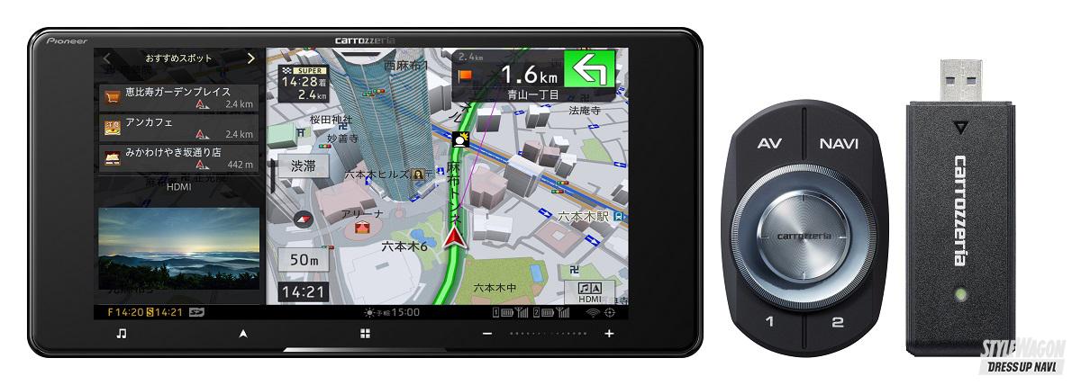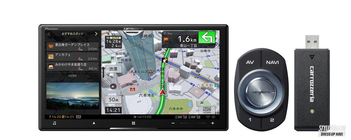 カロッツェリアのフラッグシップナビといえばサイバーナビ。今回の発表では最新地図を搭載するなどのリニューアルを図り、最新モデルとして登場。サイバーナビ最大の特徴は、別売のネットワークスティックを接続することで得られる様々なオンライン機能。「docomo in Car Connect」を契約することで、車内をWi-Fiスポット化できたり、YouTube動画を直接再生できる「ストリーミングビデオ」、家庭用ブルーレイレコーダーの映像・録画コンテンツを遠隔再生できる「レコーダーアクセス」など、様々な映像コンテンツを、通信量を気にすることなく楽しめる。また思いついたワードから目的地検索できる「フリーワード音声検索」「フリーワード検索」や、ネットワーク接続環境下で地図情報を更新できる「自動地図更新」など、オンラインを活用したナビ機能が満載。さらに、高音質を実現する設計思想のもと、高音質パーツも惜しみなく採用。サイバーナビ史上最高とする音質も堪能できる。最新モデルは9型、8型、7型200ミリワイド、7型の4機種で、それぞれでネットワークスティックの有無を選べる。どのモデルもTV/DVD/CD/Bluetooth/USB/SD/チューナーと再生メディアは多彩。