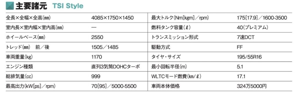 Bセグメントのハッチバック車というと、国産車なら5ナンバーサイズが当たり前だが、ポロは全幅が1750㎜あるため3ナンバー。全長も国産同クラス最長のマツダ2より20㎜長い4085㎜ある。とはいえ最小回転半径は5.1mと国産車同等なので、乗ってしまえば大きさは感じないと思う。グレード展開は標準車系4種類+スペシャルモデル「GTI」の合計5種類。標準車系は全グレードが1..0ℓ直列3気筒ターボ、「GTI」は2.0ℓ直列4気筒ターボを搭載。標準車系は最高出力95㎰/最大トルク175Nmと1.8ℓ自然吸気エンジン並みのパフォーマンスを発揮。「GTI」は最高出力207㎰/最大トルク320Nmに達するハイパワーが持ち味だ。