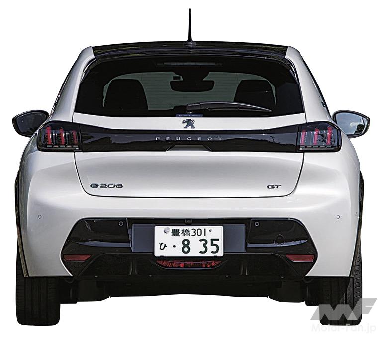 牙のようなデザインのデイタイムライトを採用した、個性的なフロントマスクは2008に近いが、よく見るとフロントグリルやバンパーのデザインが差別化されており、208の方がシャープに仕上がっている。リヤビューも208はスッキリとしたスタイルでヒップコンシャスだ。2008より全長が210㎜、ホイールベースも70㎜短いから、外観が引き締まって見える。ボディが短いと取り回しも良くなるのだが、タイヤの切れ角が小さいため、最小回転半径が5.4〜5.5mと、このクラスでは大きい方なので注意が必要だ。