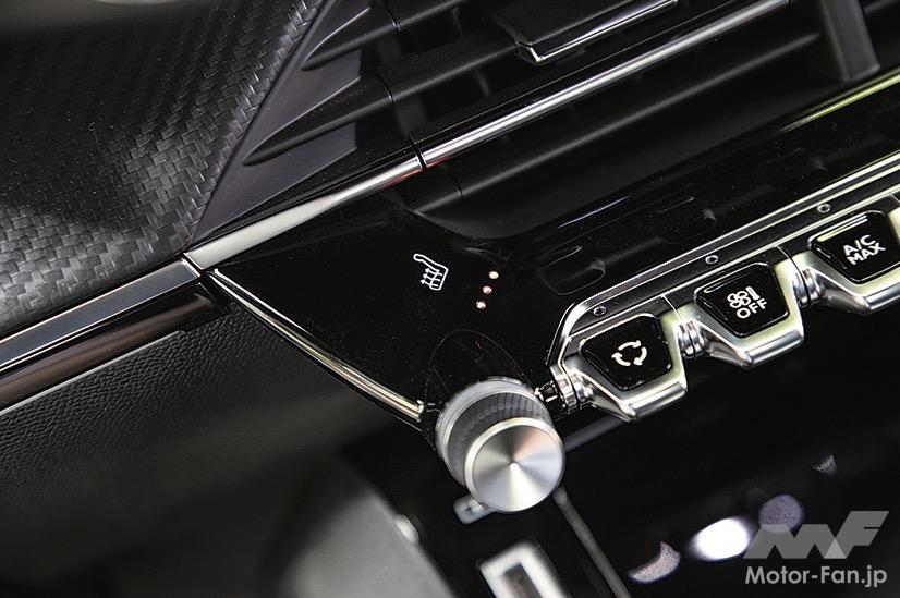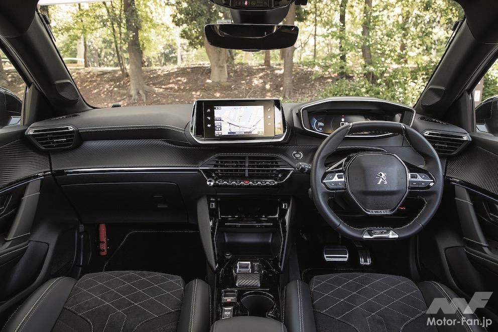 フットワークは、ひと昔前のフランス車からは想像できないほど硬になっており、操舵に対する反応も素早く、的確だ。だが、ワインディングを走らせてみるとプジョーらしい猫足は健在。コーナーではサスペンションがよく動き、タイヤの接地性を高めて、粘りのあるコーナリング性能を見せてくれる。乗り心地は少しハードだが、スポーティなルックスに見合っている。EVは300㎏以上重くなるから、軽快感は削がれるが、そのぶん重厚感が増す。