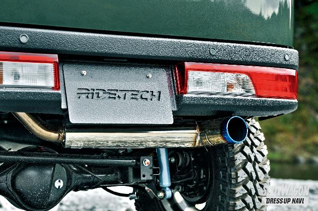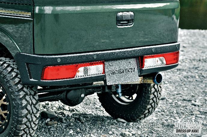エブリイのカスタマイズパーツを得意とするライドテック。ローダウン向けのハーフエアロも手がけているが、今回クローズアップしたいのはオフロードが似合う「アゲスタイル」。丈を純正よりも大幅にショート化したアップフロント&リアバンパーは、リフトアップした足元を際立たせてくれる。撮影車両のように肉厚のブロックタイヤを履かせればゴツいトレッドパターンをおもむろにアピールでき、力強さが増すのでオススメだ。これらのアップバンパーはただ丈を短くしているのではなく、デザインにもこだわりが込められている。撮影デモカー装着のフロントバンパータイプ2は純正のフォグランプを流用でき、その横にダクトを入れて立体感を強調。リアバンパーも側面にダクトを刻み、統一感を高めている。