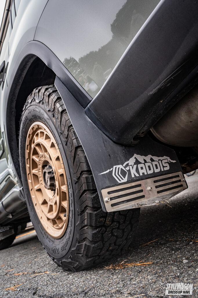 オフローダー向けシリーズのマッドヴァンスが2024年モデルとして送り出した「マッドヴァンスX」。実はシリーズ通算10デザインめという節目であり、そんな記念モデルとして「三部作」という新たな試みで展開されている。エクストレイルオーナーのナナミさんが選んた「type F」のほかに、骨太6本スポークの「typeS」、9交点メッシュの「typeM」がラインアップされており、実は外周部のデザインがそれぞれ共通化されている。センターのデザインはそれぞれ全く異なる表情を持っているが、外周部は台形のディンプルのみを連ねたビードロフック風に仕立てられている。サイズも14インチから17インチと豊富なうえ、マット系を設定するカラーリングもワイルド系。イマドキなオフ系カスタムにぜひおすすめしたいホイールなのだ。