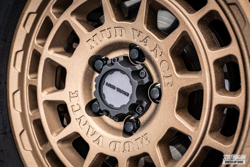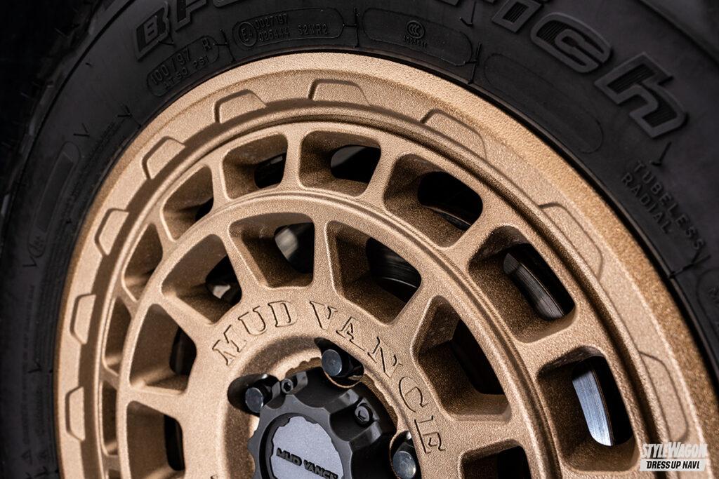 オフローダー向けシリーズのマッドヴァンスが2024年モデルとして送り出した「マッドヴァンスX」。実はシリーズ通算10デザインめという節目であり、そんな記念モデルとして「三部作」という新たな試みで展開されている。エクストレイルオーナーのナナミさんが選んた「type F」のほかに、骨太6本スポークの「typeS」、9交点メッシュの「typeM」がラインアップされており、実は外周部のデザインがそれぞれ共通化されている。センターのデザインはそれぞれ全く異なる表情を持っているが、外周部は台形のディンプルのみを連ねたビードロフック風に仕立てられている。サイズも14インチから17インチと豊富なうえ、マット系を設定するカラーリングもワイルド系。イマドキなオフ系カスタムにぜひおすすめしたいホイールなのだ。