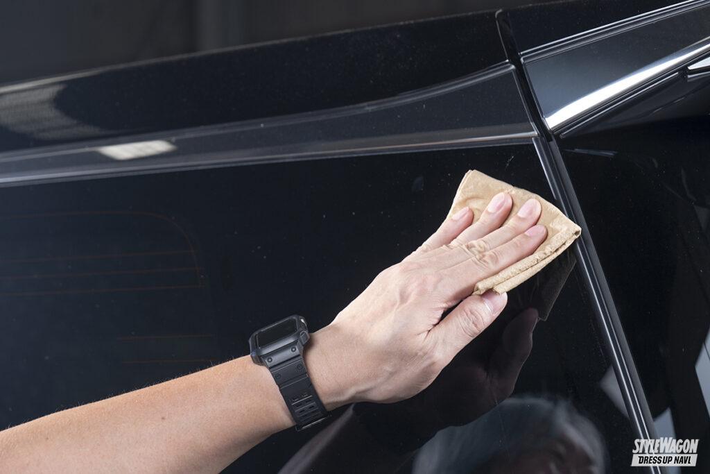 そんなエムズスピードの製品で、DIYビギナーでも簡単に取り付けられるかを検証してきた本企画。3回目となる今回は40アルファード専用の「リアウインドウガーニッシュ」の取り付けに挑戦。取り付ける場所はリアサイドウインドウの後方部分で、基本的には何もない部分。ここに5つの立体フィンがデザインされた「リアウインドウガーニッシュ」を取り付ける。製品はABS製とAES製が用意されており、塗装のあり・無しも設定されているので、目指すスタイルや目的に合わせて選べるようになっている。