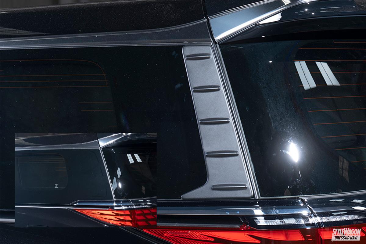 そんなエムズスピードの製品で、DIYビギナーでも簡単に取り付けられるかを検証してきた本企画。3回目となる今回は40アルファード専用の「リアウインドウガーニッシュ」の取り付けに挑戦。取り付ける場所はリアサイドウインドウの後方部分で、基本的には何もない部分。ここに5つの立体フィンがデザインされた「リアウインドウガーニッシュ」を取り付ける。製品はABS製とAES製が用意されており、塗装のあり・無しも設定されているので、目指すスタイルや目的に合わせて選べるようになっている。