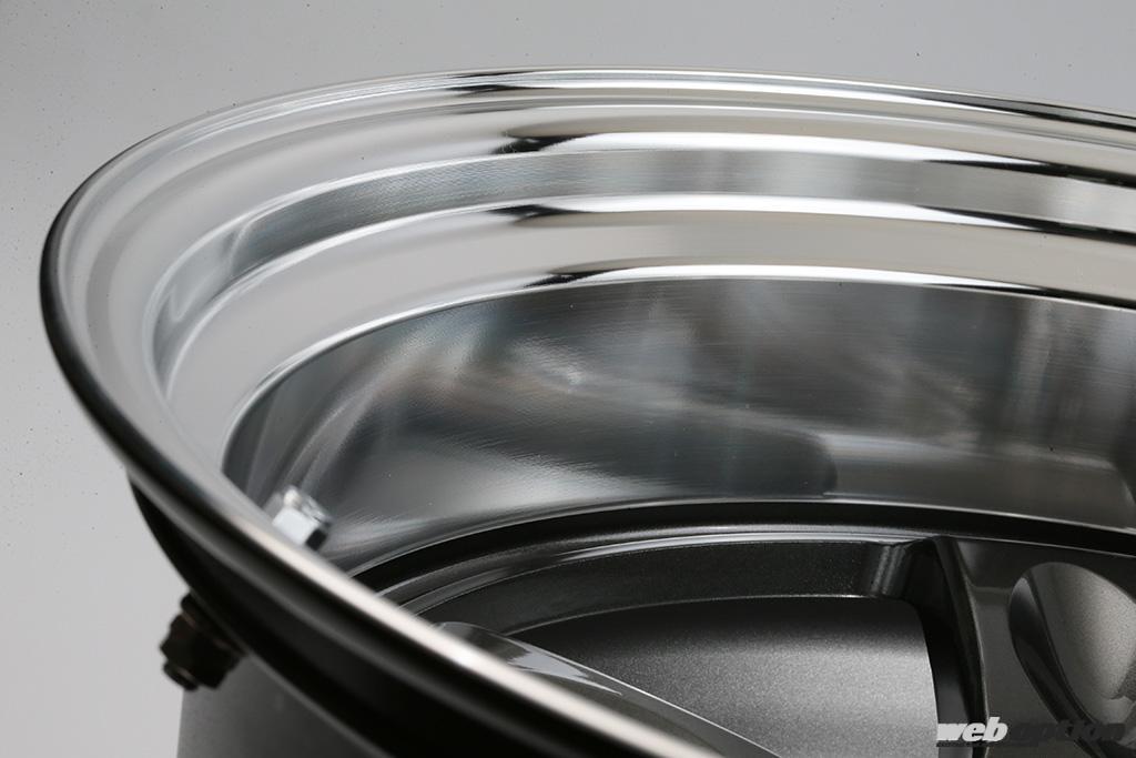 スポーク裏がフラットだったオリジナルに対し、21Cは断面厚を稼ぐためディンプル裏を凸形状としたバブルバックデザインに、TE37SAGAで実現したコの字断面もプラス。軽量・高剛性を突き詰めた。