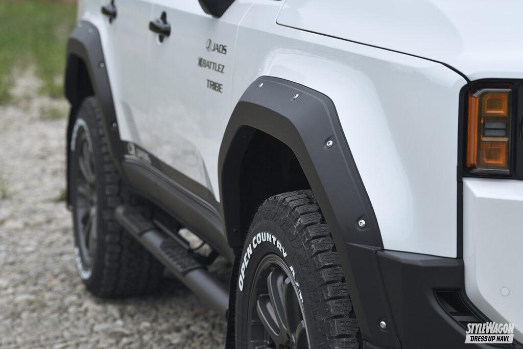 アウトドアっぽさを強調するなら、ゴツゴツとしたオフロードタイヤにするのが人気です。選ぶホイールの大きさによって、おおよそのタイヤサイズは決まっています。