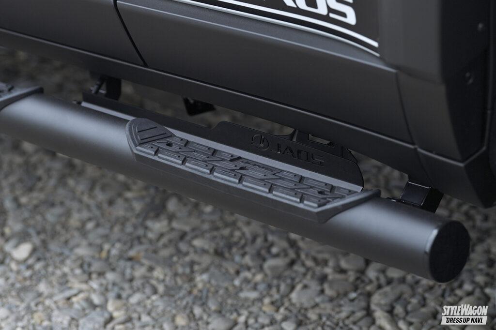 タイヤ&ホイールと同様に、外装イメージを変えられるカスタムがボディキットの装着です。エアロパーツとも呼ばれるもので、純正バンパーに被せたり、純正バンパーと交換をして装着する前後スポイラーをはじめ、フロントグリル、サイドステップ、オーバーフェンダーなどがあります。ボディキットはデザインが重要です。例えばスチールバーなどを使ったタフなデザインであればアウトドアシーンが似合いますし、シャープでスポーティなデザインであれば街中が似合うようなスタイルとなります。どんなスタイルが好みかを考えながらパーツ選びをしましょう。グレードにより装着できない場合もあるので注意しましょう。