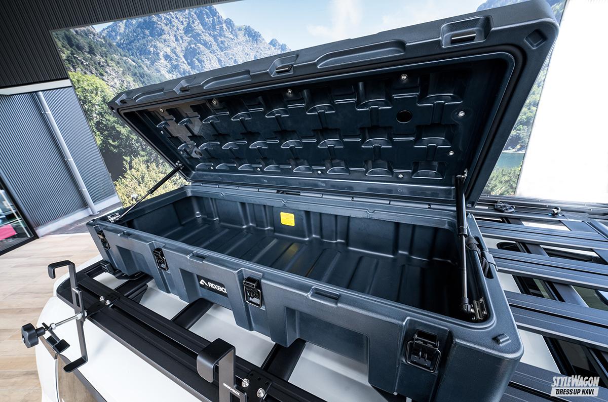 ルーフギアは、ルーフの上に装着する収納系パーツです。ベースとなるルーフラックを装着した上に、収納ボックスなど様々なギアを追加することで、好みの収納スペースとして使うことができるようになります。見た目もアウトドアな雰囲気が高まり、お洒落ですよね。