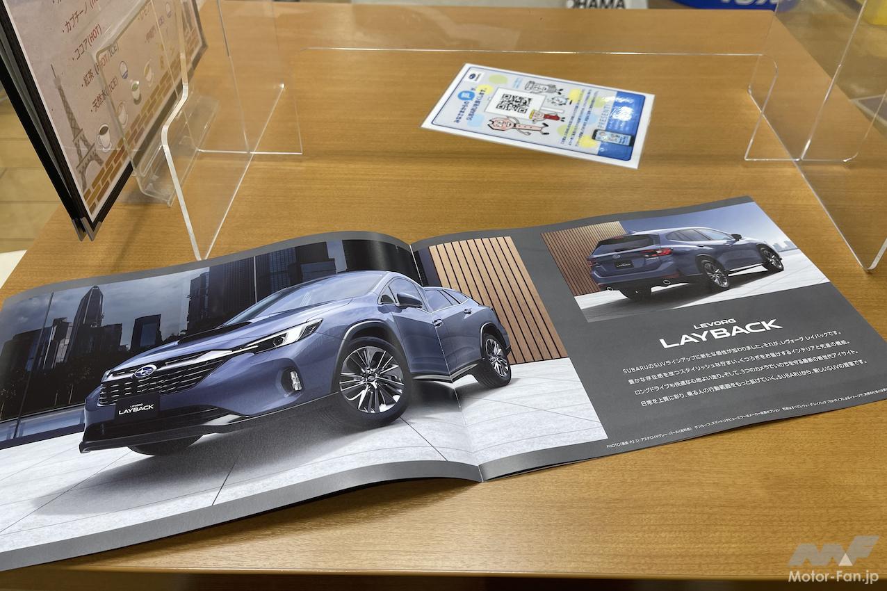 チェックをしてもらっている間、しばし商談スペースで待機していると、担当のN氏がニコニコしながら「これ宣伝しておいてくださいよ」と、この秋発売予定のレヴォーグ レイバックのカタログを持ってきた。