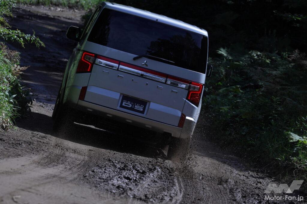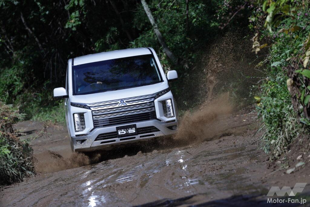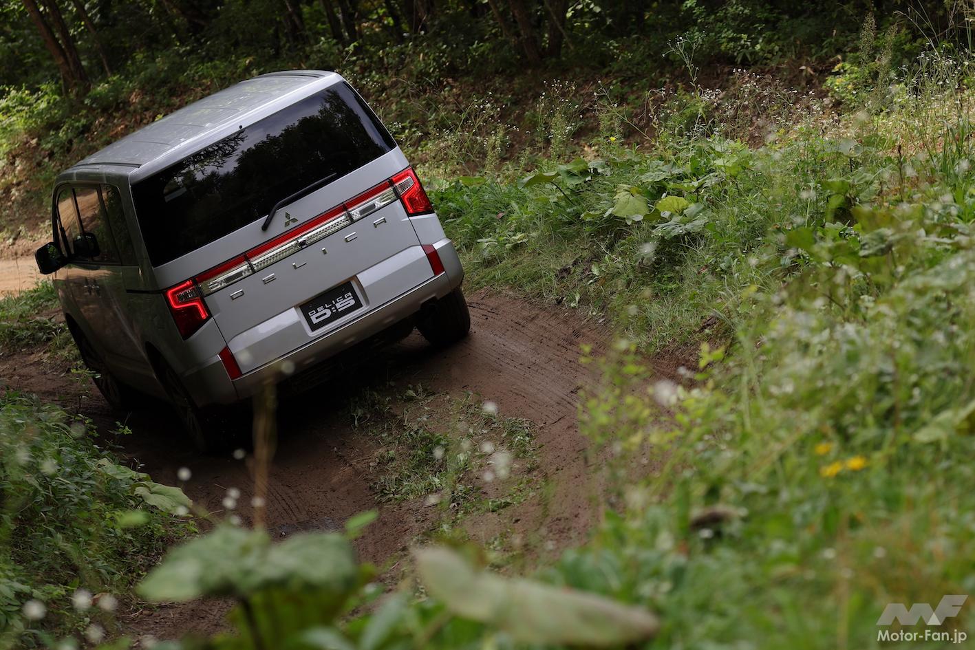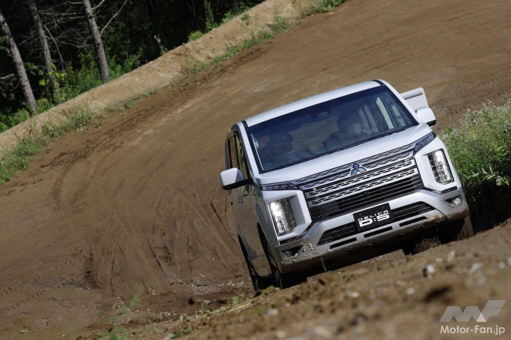 デリカD:5はステアリングホイールから伝わる反力や身のこなしからヤワなイメージを感じるが(多人数乗車のミニバンであることを考えれば、快適性重視なのは当然)、悪路を澄まし顔でクリアしてしまう。強そうな顔をしているものの本質はミニバンであることを考えれば、この頼もしさは何?と驚愕を禁じ得ない。
