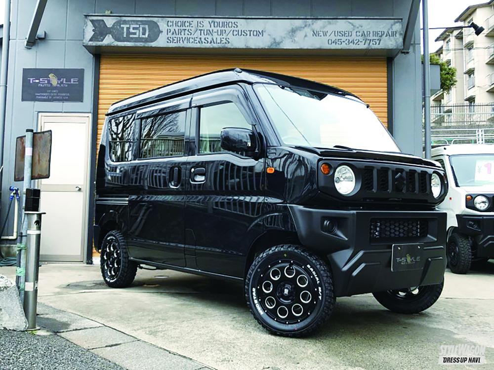 ハイエース界で有名な神奈川県のティースタイルオートセールス。実はスズキの副代理店でもあり、昔からエブリイのカスタムコンプリートカーも手がけてきた経験豊富なプロショップ。最近の主力となるパッケージは、エブリイをジムニーフェイスに仕立てる「ジムリィ」。カスタマイズ業界でも話題となったこのフェイスキットも、ユーザーがノーマルの車両を買って同じ仕様を作る場合、塗装や取り付け費用もかかることを考えると少々ハードルが高い。しかし右ページのジムリィコンプリートを見ると、最上級グレードのジョインターボをベースと考えるととてもお手頃な価格設定。これは車両の値引きに加え、自社パーツをパッケージ化することで実現した価格。車両持ち込みで後からジムリィのキットを取り付ける場合と比べ、トータルの金額は20万円も違うというから、最初から新車コンプリートカーを選んだ方が間違いない。またグレード別で価格を提示してくれるから分かりやすく、さらにパーツを追加してオリジナリティのあるクルマ作りも大歓迎だ。