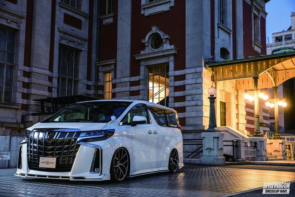ベースとなるクルマがわからないほど、刺激的なフォルムへと激変させるアルバーモ。抜群の存在感を発揮できる。