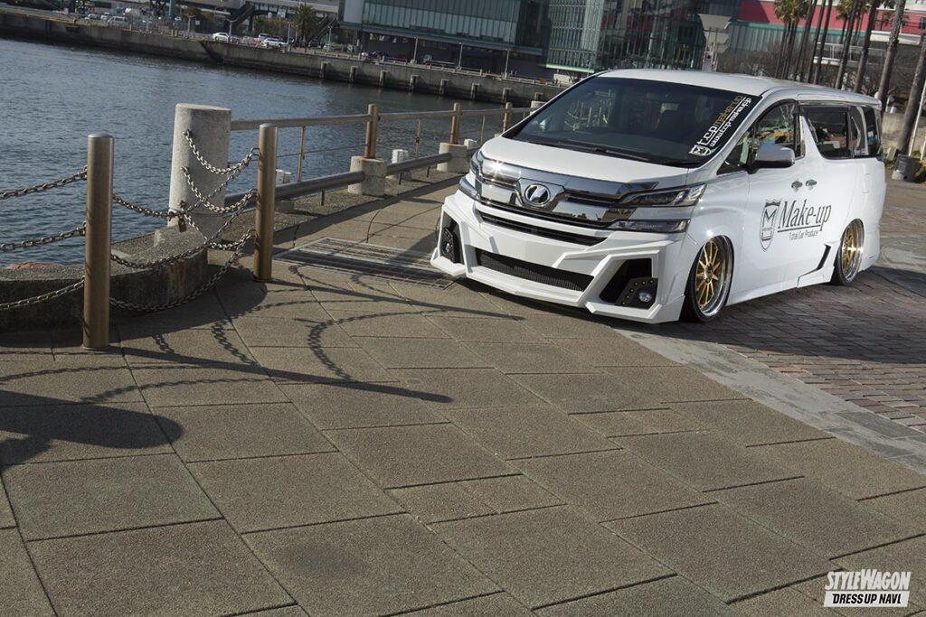 大阪のプロショップ・メイクアップのオリジナルブランド。30ヴェルファイアと20アルヴェルに向け、バンパーエアロを用意している。